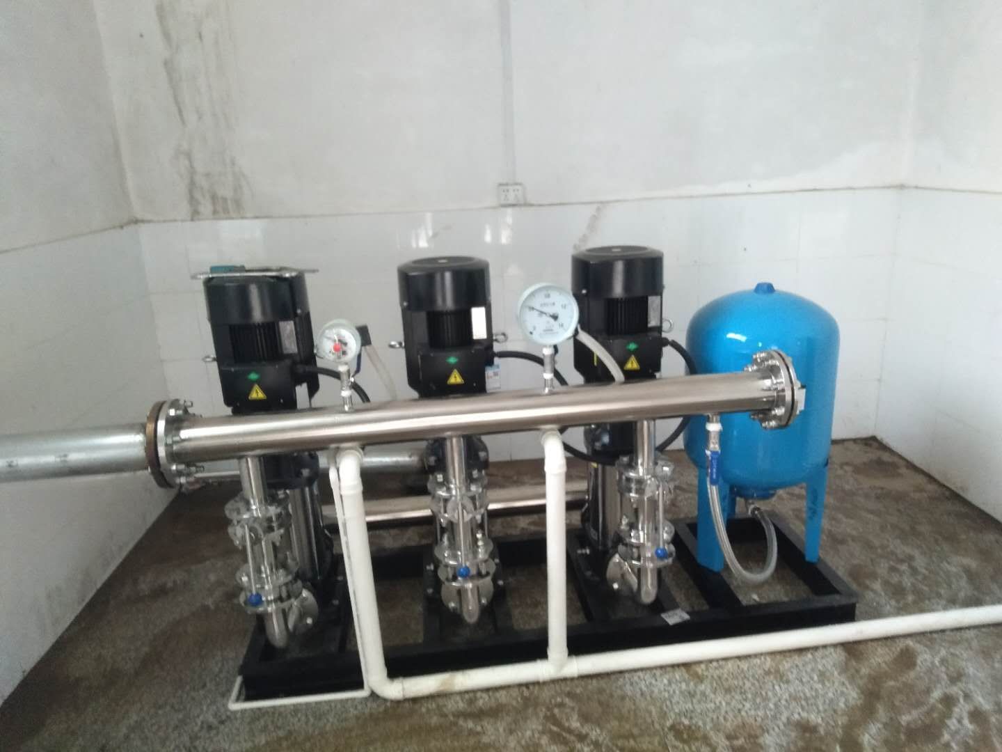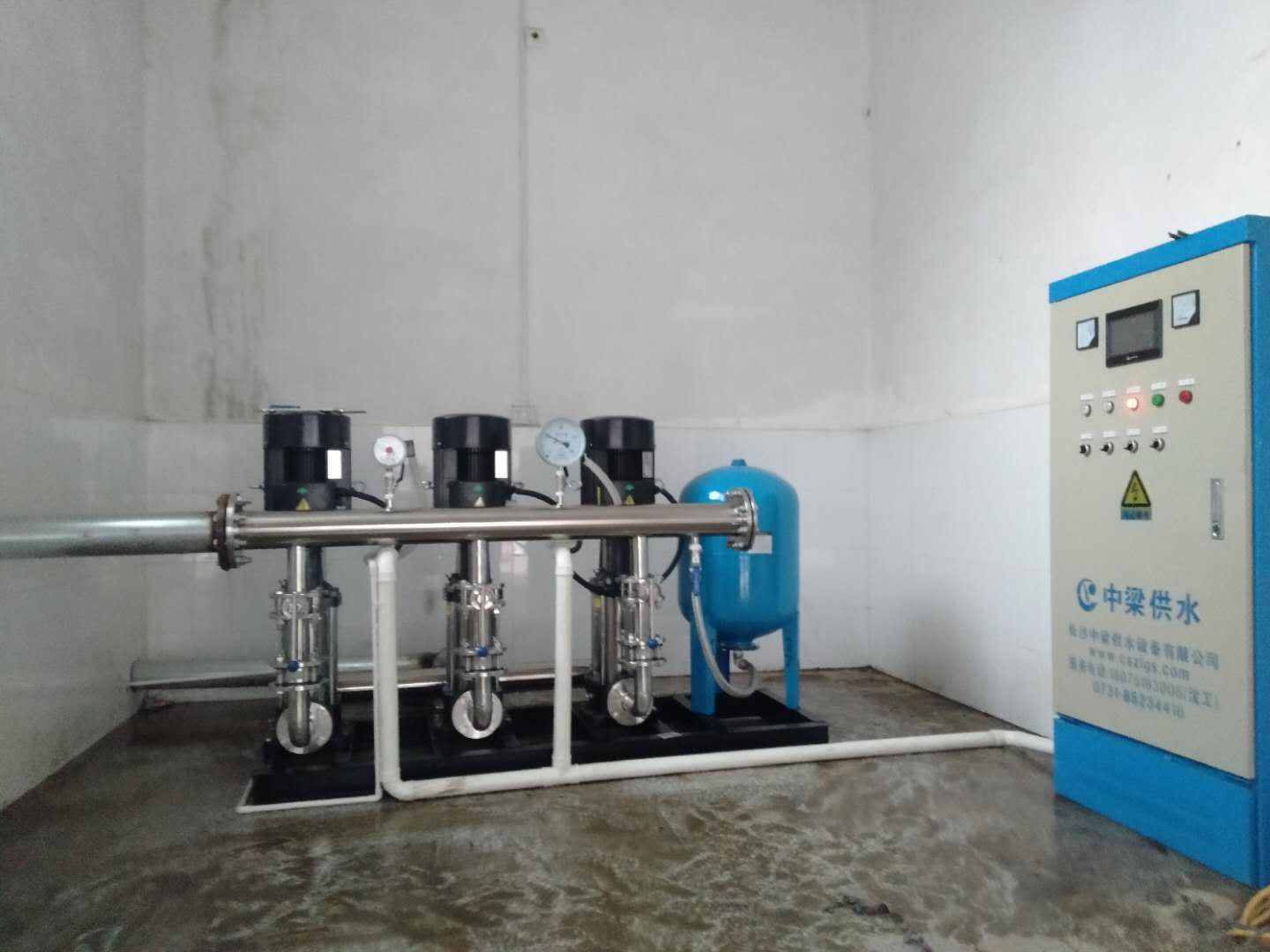 本項目位于湖南永州市道縣瀟水北路454號,為供水加壓系統(tǒng),安裝一套我司變頻恒壓供水設(shè)備,控制方式一用一備,該系列供水設(shè)備采用微機控制技術(shù),結(jié)合高性能變頻調(diào)速器,根據(jù)實際用水量的多少自動調(diào)節(jié)水泵轉(zhuǎn)速或增減運行水泵的臺數(shù),實現(xiàn)恒壓供水,供水設(shè)備壓力穩(wěn)定可靠,高效節(jié)能,是生活小區(qū)、自來水廠、工礦企業(yè)等需要二次加壓的供水設(shè)備??刂品绞蕉喾N,如一用一備,二用一備,三用一備,一控二,一控三,一控四等。