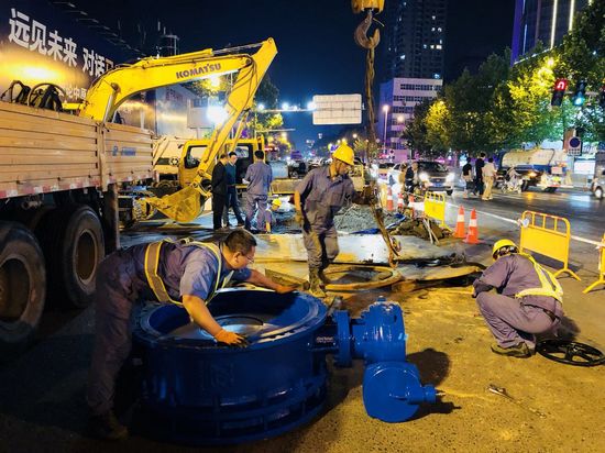 9日晚上21:00,早已等候在一個個更換現(xiàn)場的職工小心翼翼地移開鋪設(shè)的鋼板,再次開始作業(yè)。10日凌晨1:28分,鄭汴路、東明路直徑0.8米閥門更換完成;凌晨4:50,金水路東明路dn1000、黃河路東明路dn400閘門更換完成……三強公司搶修微信群內(nèi)不時地傳來各個維修項目部的施工進(jìn)度。截止6月11日上午10:00時,9個直徑大小不一的閥門被陸續(xù)更換完成。